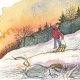 This new printing is an anniversary edition, as I mentioned. Glad they brought it back, as it was a favorite for my kids back in their day. TIME for kids noted about the original: “Little kids love stories about Santa’s flying reindeer, but maybe you’re ready for something more scientific. Now you can read the not quite down-to-earth facts in Flight of the Reindeer by Robert Sullivan, illustrated by Glenn Wolff. Sullivan interviewed reindeer experts, historians, flight specialists and other ‘Santa’s helpers’ around the world. Their eyewitness accounts of reindeer streaking across starlit northern skies are, well, unbelievable. Wolff’s beautiful, detailed drawings show how the aerodynamics of reindeer flight are like airplane flight. . . .Secret details of reindeer flight are revealed. Did you know that all U.S. Presidents sign a ‘Santa Claus clause’ directing planes to clear North Pole airspace on Christmas Eve? That Dasher was hyperactive as a fawn? That the team has been together for 2,000 years? (Except for rookie Rudolph-just 1,500 years.) There’s incredible, detailed history here. Sullivan seems to be full of it!”